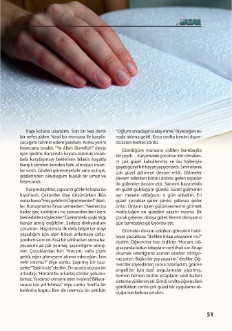 lağa çok hoş gel yordu. Fakat korkularımın Tenha ve karanlık b r kor dorda d zler mde t t- yordum sanırım. Kısa b r sohbetten sonra he- layıp çocuklara: “B rl kte k tap okuyalım mı?”